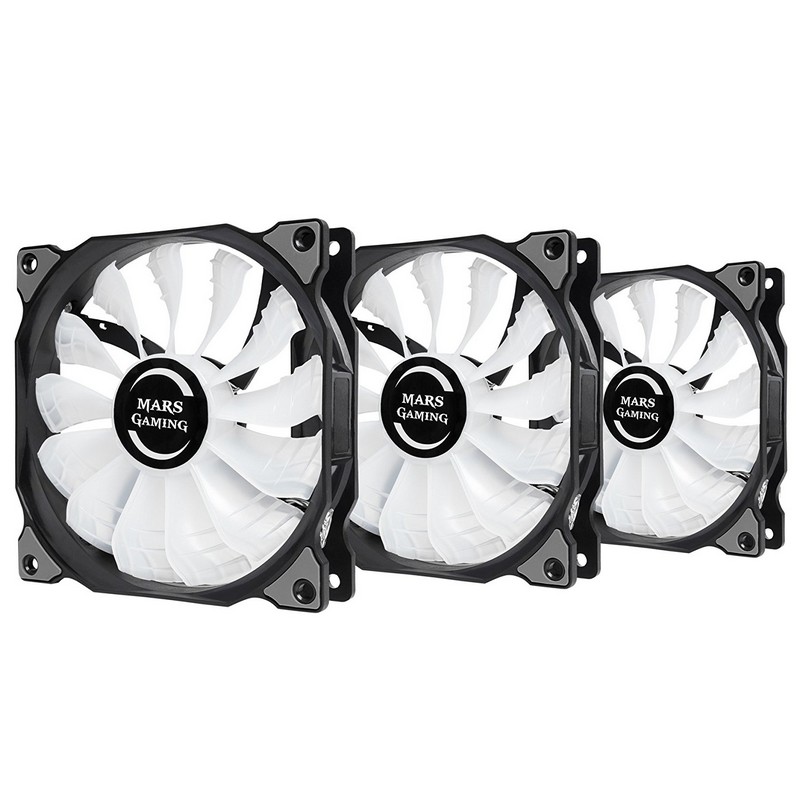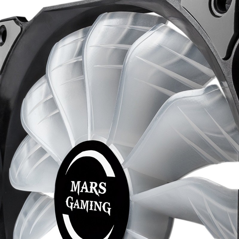 Características: Iluminação RGB x 3 O kit de 3 ventoinhas RGB oferece iluminação, ventilação e design triplos. Têm 12cm para adaptar-se a qualquer configuração sem dispensar a potência de arrefecimento, estas ventoinhas possuem um sistema de iluminação RGB com 4 efeitos espetaculares. Silêncio Com uma velocidade de até 1200 RPM, as ventoinhas MFRGB Kit são ultra silenciosas, gerando apenas 18dB de ruído. Ventilação total Obtém um fluxo de ar superior graças às 13 pás de cada uma destas ventoinhas. Agora multiplica-as por três! Um total de 39 pás para oferecer ao teu computador gaming a melhor ventilação. Além disso, o seu design anti-turbulência é especialmente projetado para aumentar o fluxo de ar, garantindo o máximo ventolação. Controla-as com o teu controlo remoto Toda a potência do mundo: este kit inclui um controlo remoto para um controlo rápido, confortável e fácil da iluminação. Seleciona entre 4 efeitos RGB ou até 16 cores estáticas e configura o teu dispositivo de acordo com a tua preferência. Durabilidade absoluta Os rolamentos hidráulicos das ventoinhas garantem 60.000 horas de vida útil. Prolonga a vida das tuas ventoinhas e do teu PC em geral, mantendo-o sempre fresco. Máxima estabilidade Suportes antivibração com âncoras de borracha garantem uma operação estável e silenciosa das três ventoinhas que compõem este kit. Obtém máxima eficiência e desempenho e esquece o ruído e a falta de estabilidade. Especificações: